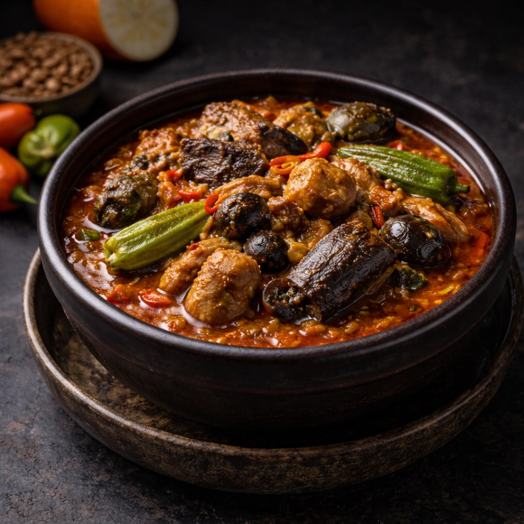 Sauce composée de plusieurs ingrédients typiques ivoiriens.